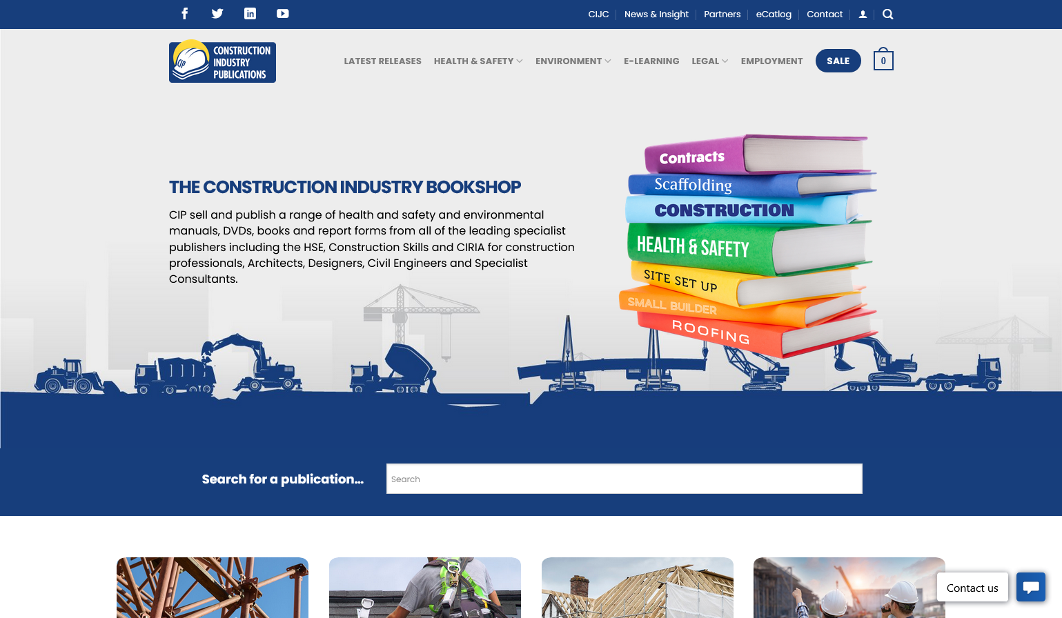 Construction Industry Publications (CIP) is a publisher and stockist of a range of health, safety and environmental manuals, posters, DVDs, books and report forms for construction professionals, Architects, Designers, Civil Engineers and Specialist Consultants, along with several construction contracts, and employment guides and forms.