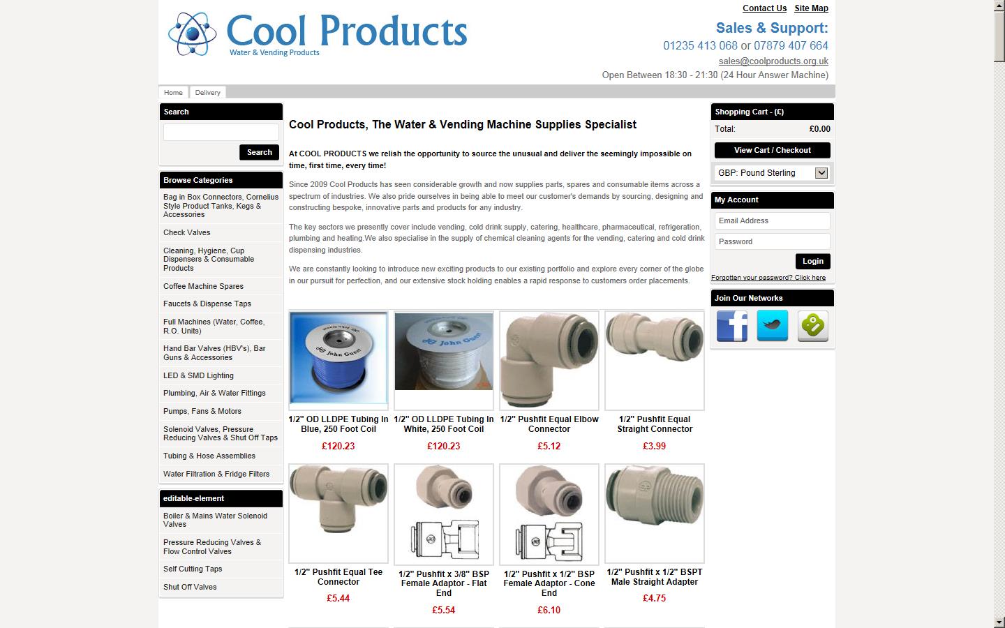 Established in 2009, Cool Products was formed to meet the requirements or the vending machine industry offering a large range of vending plumbing supplies and water related products to customers within the various industries throughout the UK.
