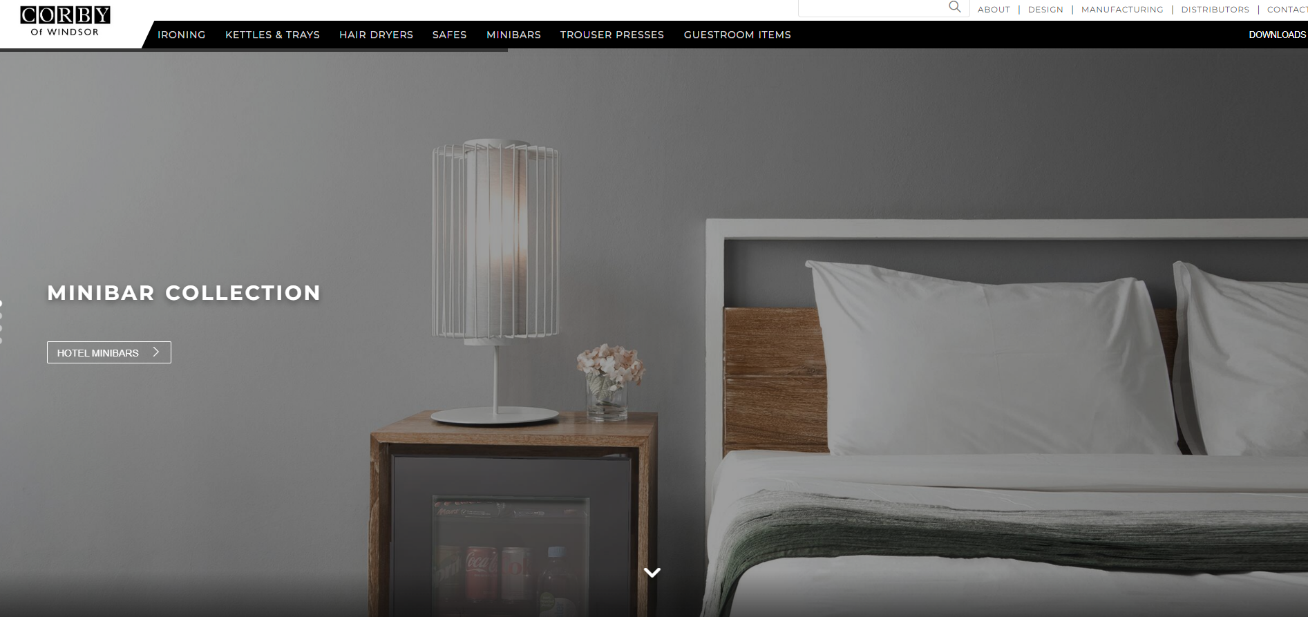 Since 1930, Corby of Windsor has been supplying quality products to the hotel and hospitality industry. Internationally famous for the eponymous Corby Trouser press, we have extended our range to include bathroom and bedroom amenities, electrical appliances (including trouser presses and ironing centres, kettles, wine coolers and mini bars), trouser press, safes, and spa products. We not only distribute to UK but also internationally.