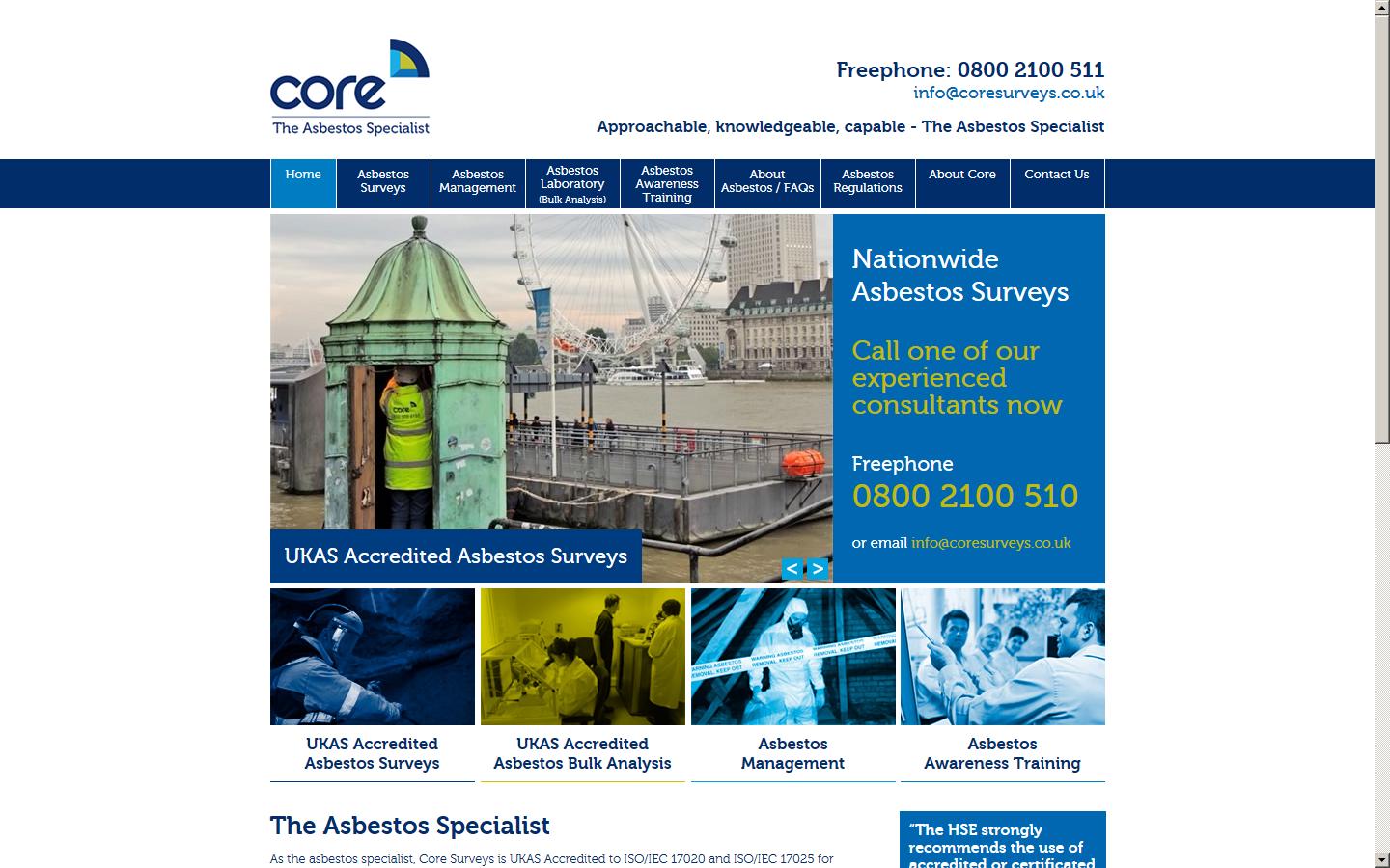 The asbestos specialists. Core provide asbestos surveys, asbestos testing, asbestos management, all using our own UKAS accredited surveyors and in-house laboratory. Please contact us for asbestos information and advice.