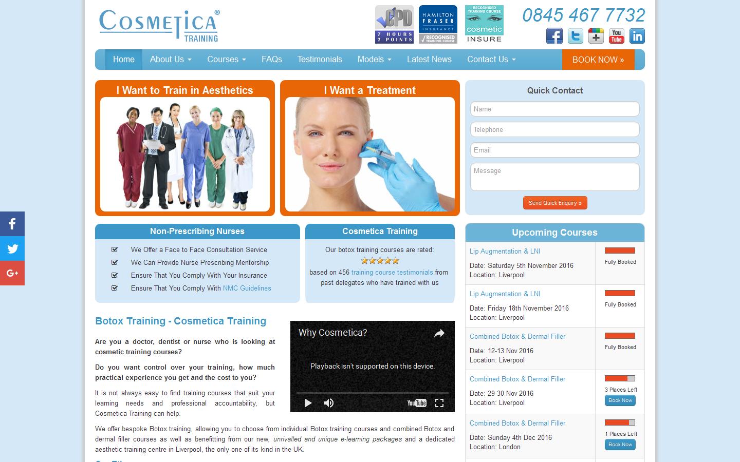 Cosmetica Training Ltd conduct professional and comprehensive cosmetics training and courses, ranging from botox training, chemical peel training, dermal filler training, lip augmentation training, combined courses, supervised training and more, including advanced.
