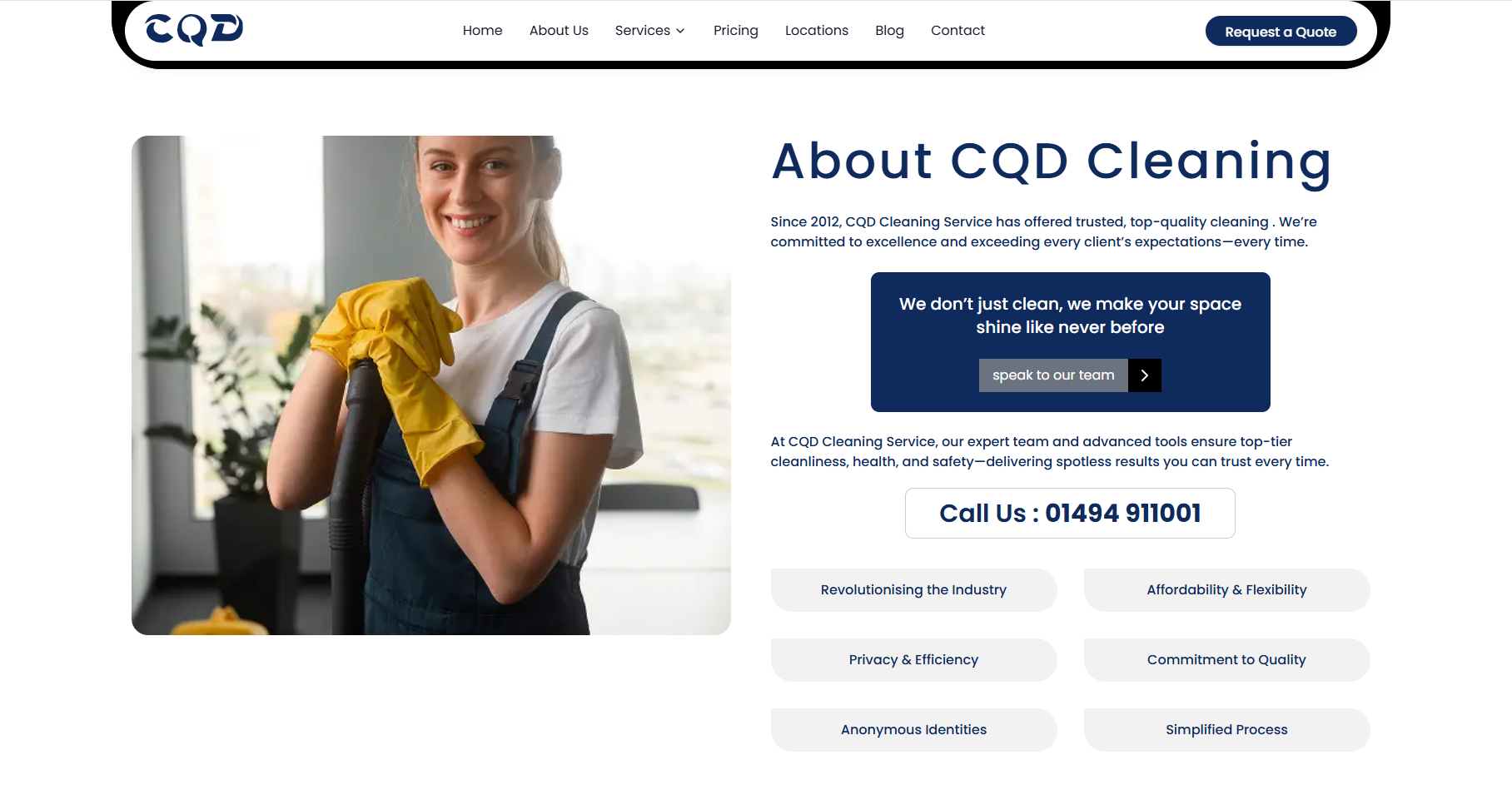 At CQD Cleaning Service, we offer affordable, top-tier cleaning solutions without compromising quality. Choose flexible packages tailored to your needs and enjoy efficient service with our 10-mile radius system that reduces cost and saves time. Our fully trained professionals are committed to delivering spotless results with care, precision, and unmatched dedication.