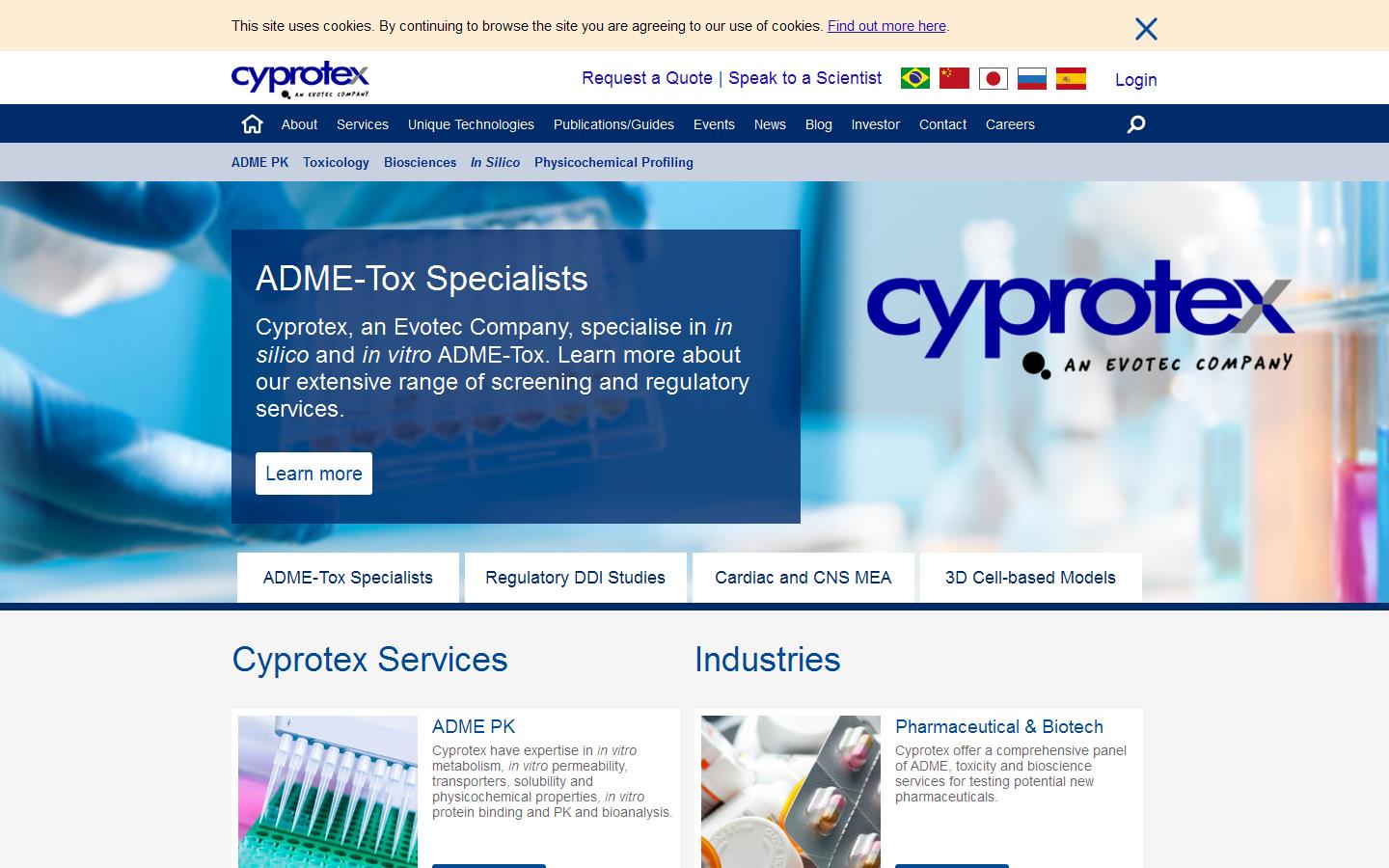 Cyprotex (www.cyprotex.com) was founded in 1999 and specialises in in vitro and in silico ADME-Tox. This includes in vitro ADME screening to support discovery projects, regulatory in vitro ADME and DDI studies during preclinical and clinical development, specialist mechanistic in vitro human and animal toxicity models (e.g. 3D models and MEA electrophysiology) and modelling and simulation expertise. The company has sites at Alderley Park near Manchester in the UK and in Watertown near Boston in the US. In 2016, Cyprotex was acquired by Evotec AG (www.evotec.com). As a whole, the Group offer integrated and stand-alone drug discovery capabilities as well as full CMC and IND-enabling services, allowing the company to provide expert support across the value chain from early discovery through to preclinical development and beyond.