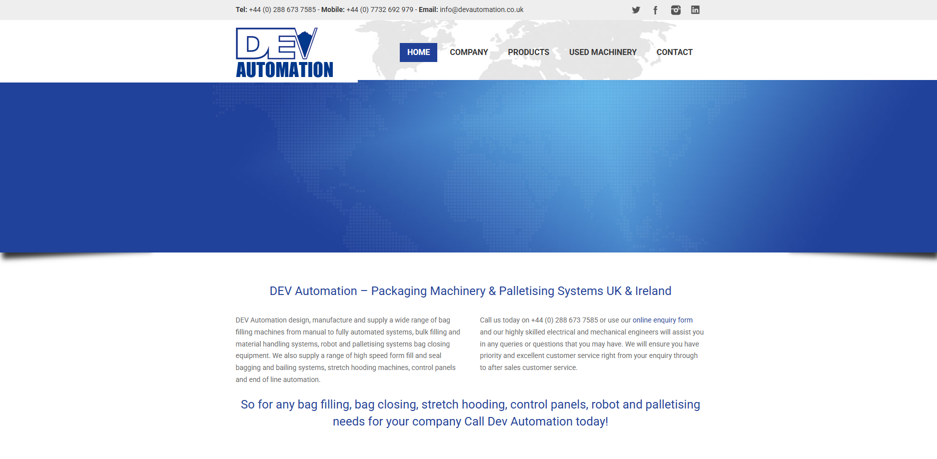 DEV Automation design, manufacture and supply a wide range of bag filling machines from manual to fully automated systems, bulk filling and material handling systems, robot and palletising systems bag closing equipment. We also supply a range of high speed form fill and seal bagging and bailing systems, stretch hooding machines, control panels and end of line automation.