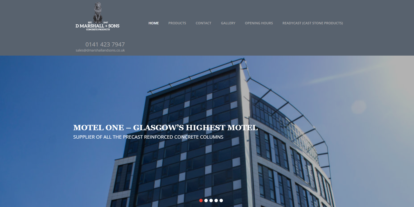 Established in 1947, D Marshall and Sons produced precast concrete including edgings, copings and coal bunkers for local housing co-operatives. In 1968, the second generation relocated the business to larger premises and extended the product range to include bespoke and customised precast. Considerable investment was made in extending the factory, an automated batching plant and highly skilled pattern makers and craftsmen were introduced. In 2007, the third generation celebrated 60 years of commitment to customer service and the manufacture of the highest quality products, as a Registered Firm of Assessed Capability relating to the BS EN ISO 9001:2000.In 2012, D Marshall & Sons relocated to a new purpose built, 2.5 acre facility situated just off the M74 motorway, 2 miles from Glasgow City Centre.