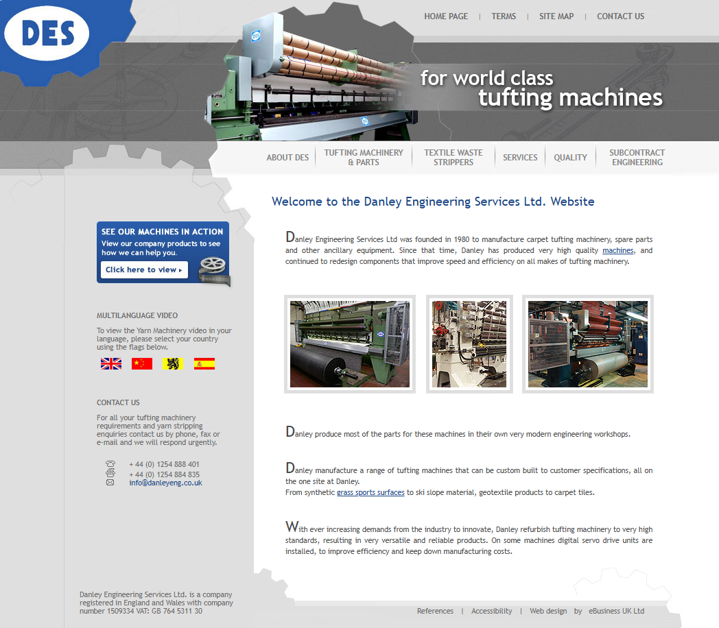 Danley Engineering Services Ltd was founded in 1980 to manufacture carpet tufting machinery, spare parts and other ancillary equipment. Since that time, Danley has produced very high quality machines, and continued to redesign components that improve speed and efficiency on all makes of tufting machinery.