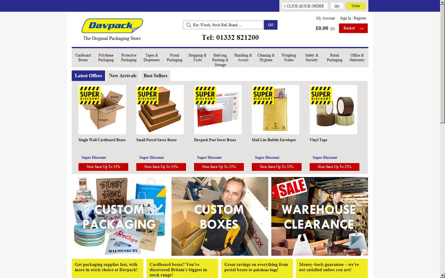 Davpack are extensive stockists of everything packaging related, from cardboard boxes. biodegradable loose fill, polythene bags, sleeving, bubble wrap, paper bags, strapping tools, padded envelopes, storage and handling products and many other packaging products.