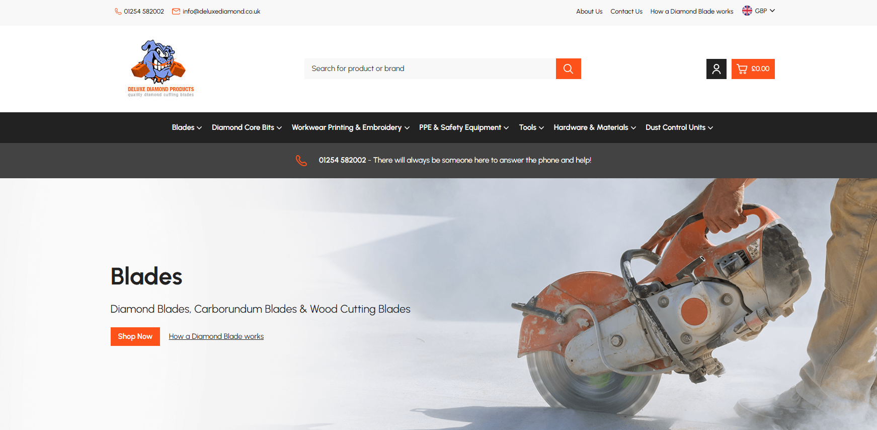 Here at Deluxe Diamond you can order from our full range of cutting grinding, drilling power tools & accessories. Transactions are secure and we will never pass on or use your personal details without asking you first. We pride ourselves on our quality of product, customer service and support.