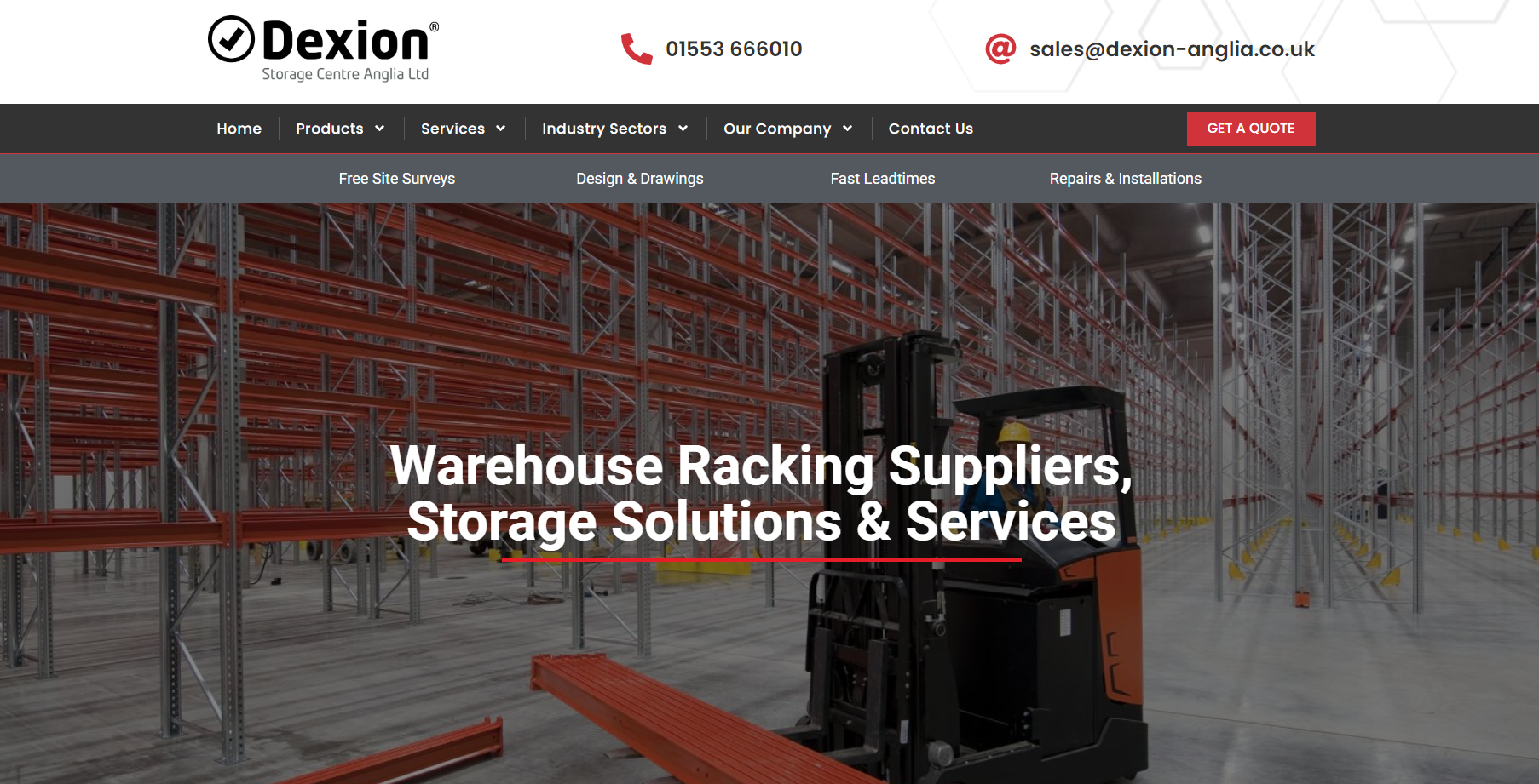 Dexion Anglia Ltd are a Norfolk based company with over 15 years experience in the supply and installation of warehouse and storage products, with our genuine Dexion range comprising of high quality items and services. Our customers range from government, police, NHS, food processing and other environments.
