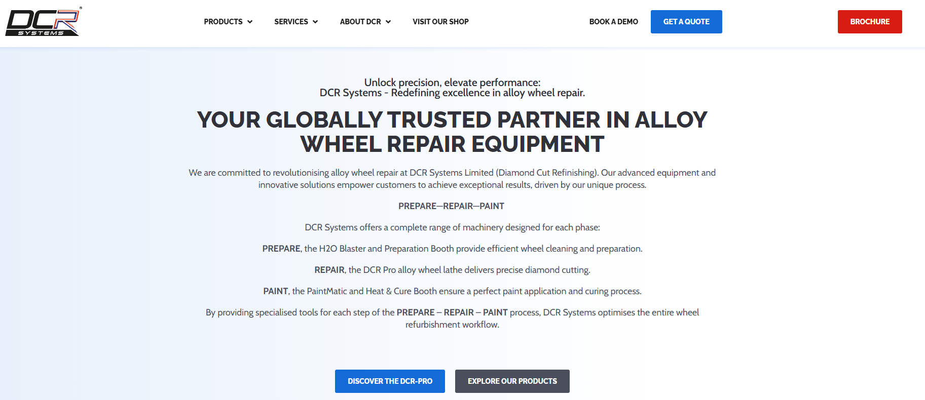 DCR Systems Ltd takes pride in designing and manufacturing our cutting-edge alloy wheel repair equipment. All of our machines are proudly designed in the UK, adhering to the highest standards of quality and innovation. This UK design expertise ensures that our alloy wheel lathes and other wheel repair tools meet the rigorous demands of professionals worldwide. With a strong global distribution network, we supply our comprehensive range of wheel service equipment to customers across the globe, facilitating efficient and high-quality alloy wheel refurbishment on an international scale.