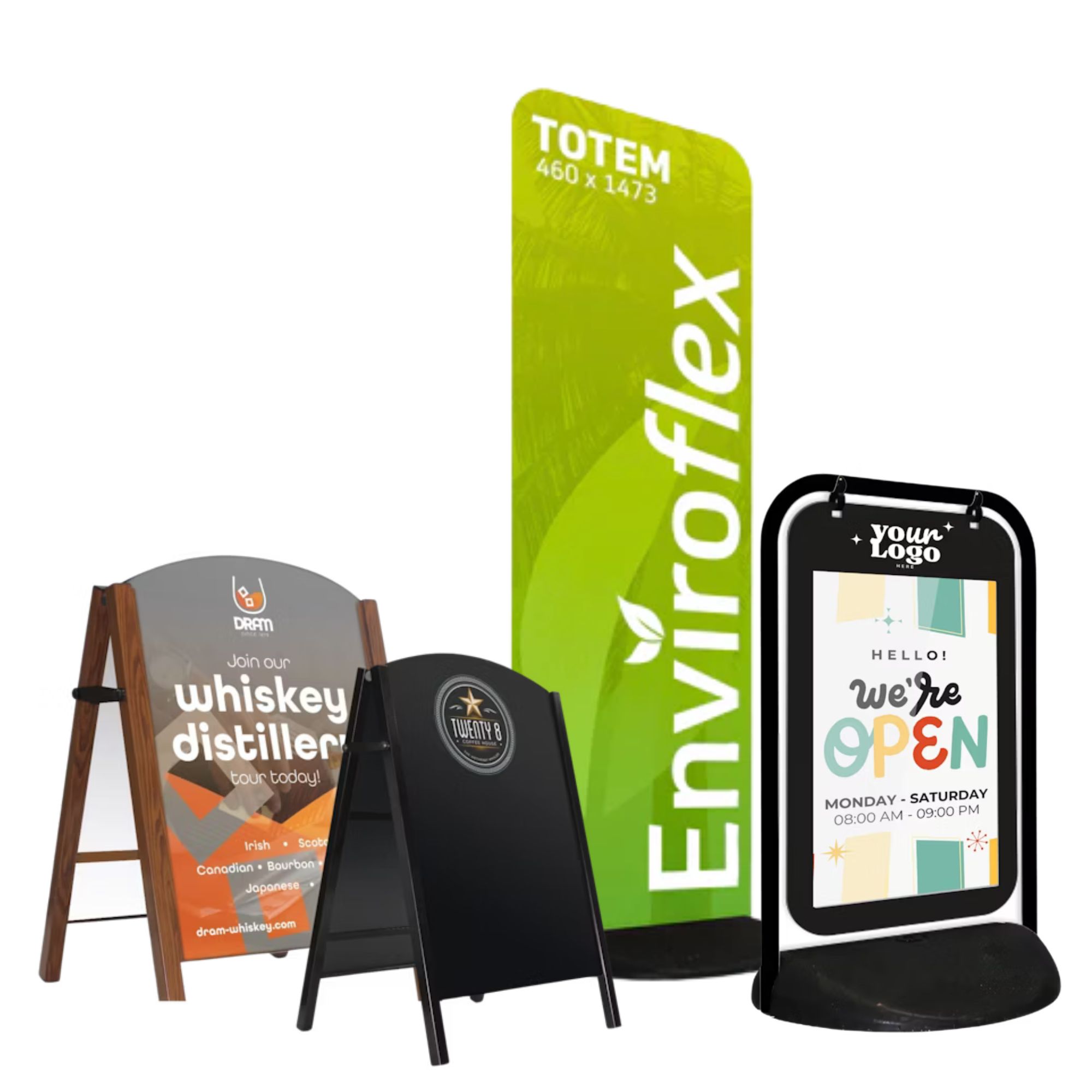 Enhance the effectiveness of promoting your organisation through our impactful outdoor display stands. Take your branding to new heights outside your premises or at trade shows, fairs, and various events using our outdoor stands, crafted to withstand extended exposure to all weather conditions.