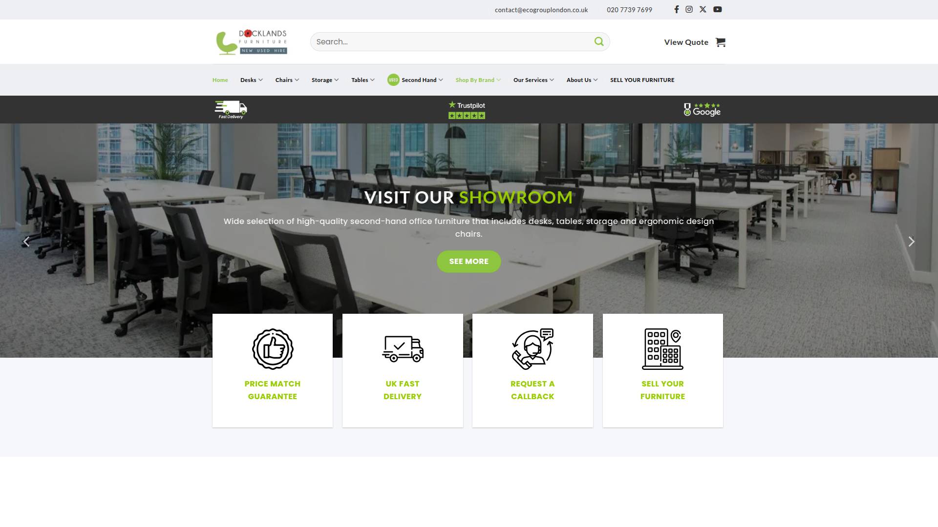 Docklands Office Furniture is now a recognised brand name in London, synonymous with new and used office furniture, having been in Hackney Road in London’s East End for over two decades. We have a large showroom at 472 Hackney Road, displaying a good selection of new and used office furniture, which is constantly refreshed. Aside from selling furniture we also offer a full refurbishment service for businesses in London and the surrounding areas.