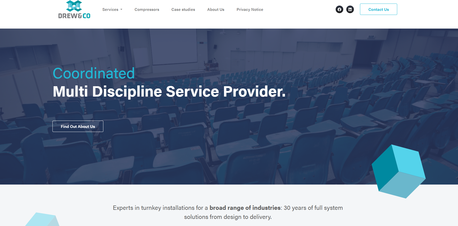 Many of our clients require complex systems and multiple subsystems – compressed air, chilled water, electrical, mechanical, and more. They want to know they can rely on a single point of contact. At Drew & Co. we are able to provide complete system design in-house utilising the latest software and technology. We also have our own fully equipped workshop in Plymouth, reducing risk of delays and disruptions while fully controlling the quality of our manufacturing processes. If you want something done right, do it yourself – we think these are words to live by.