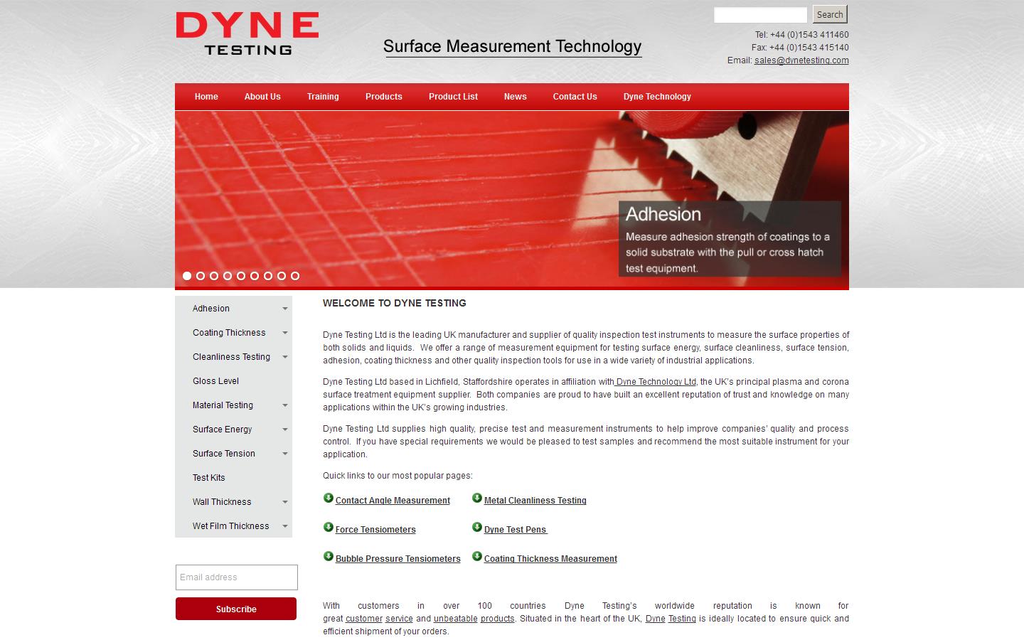 Dyne Testing Ltd is the leading UK manufacturer and supplier of quality inspection test instruments to measure the surface properties of both solids and liquids. We offer a range of measurement equipment for testing surface energy, surface cleanliness, surface tension, adhesion, coating thickness and other quality inspection tools for use in a wide variety of industrial applications.