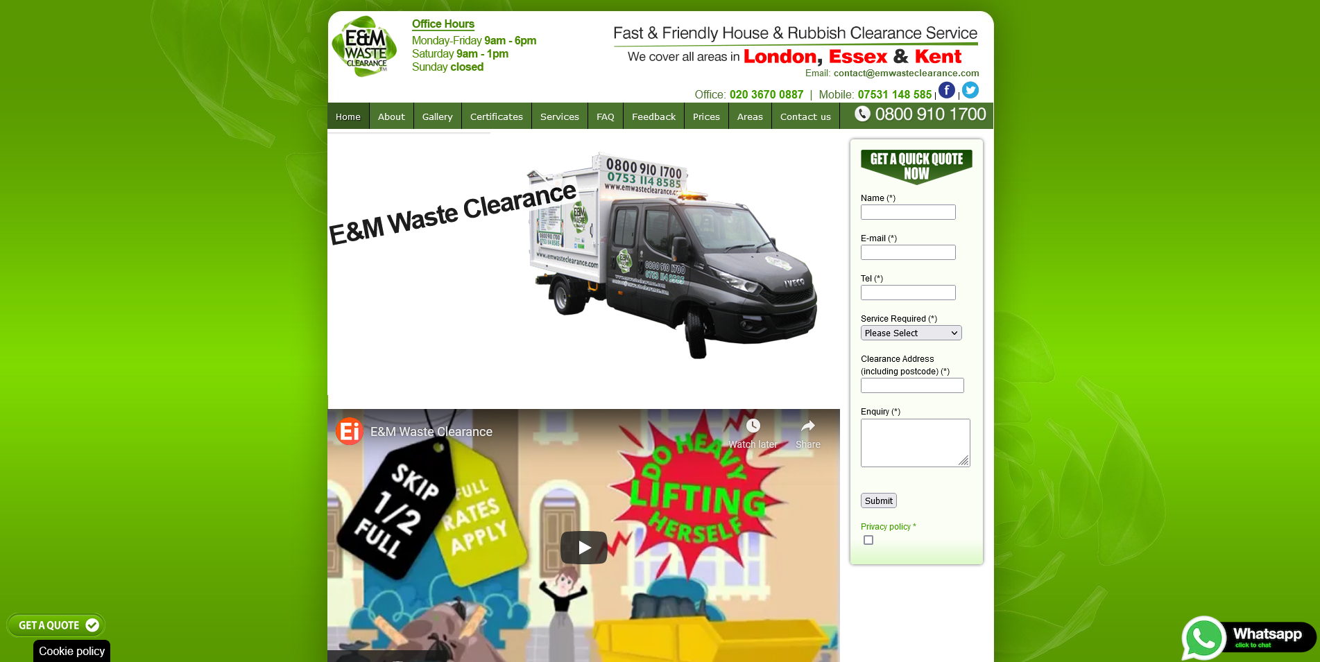 E & M Waste Clearance have quickly gained a reputation for having an environmentally friendly approach to all projects, offering professional service and excellent waste management solutions.