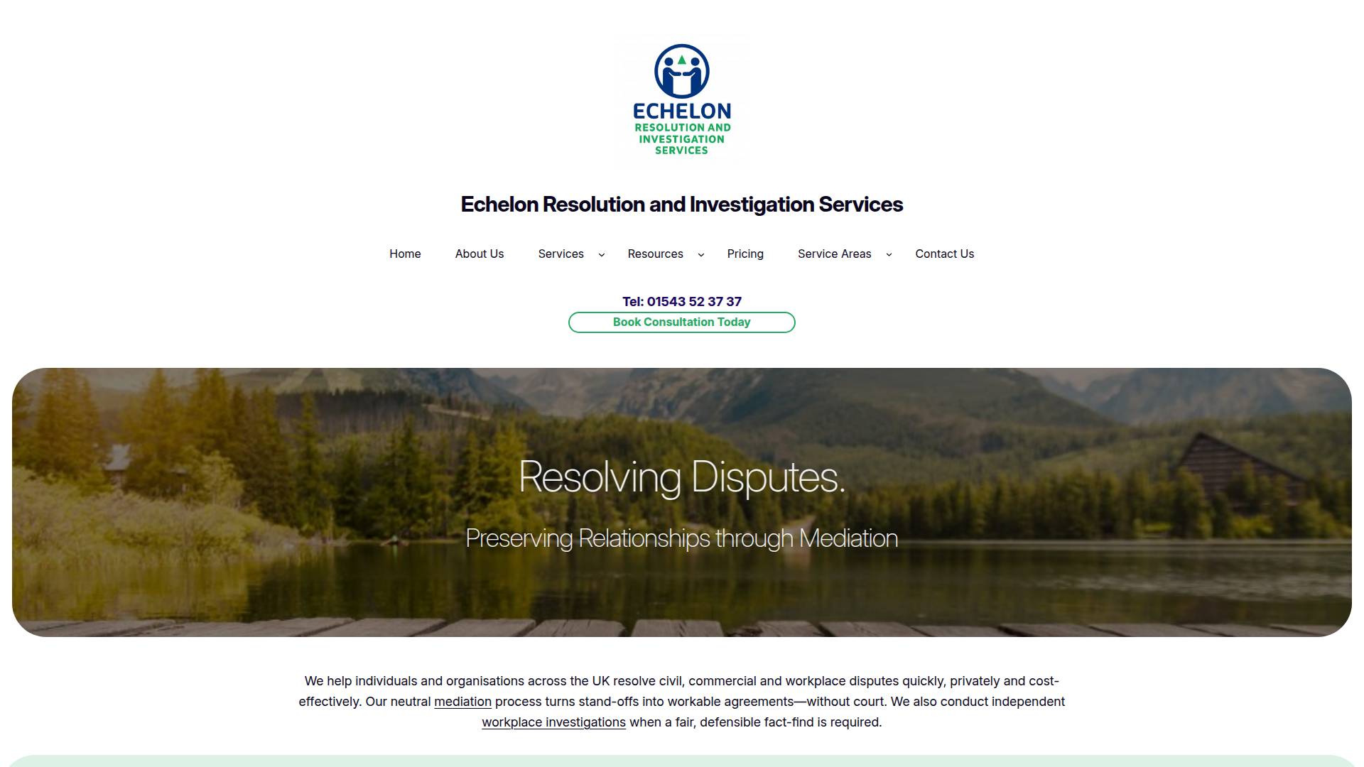 Echelon Resolution and Investigation Services provides independent commercial, civil and workplace mediation, along with impartial workplace investigations, across the UK.