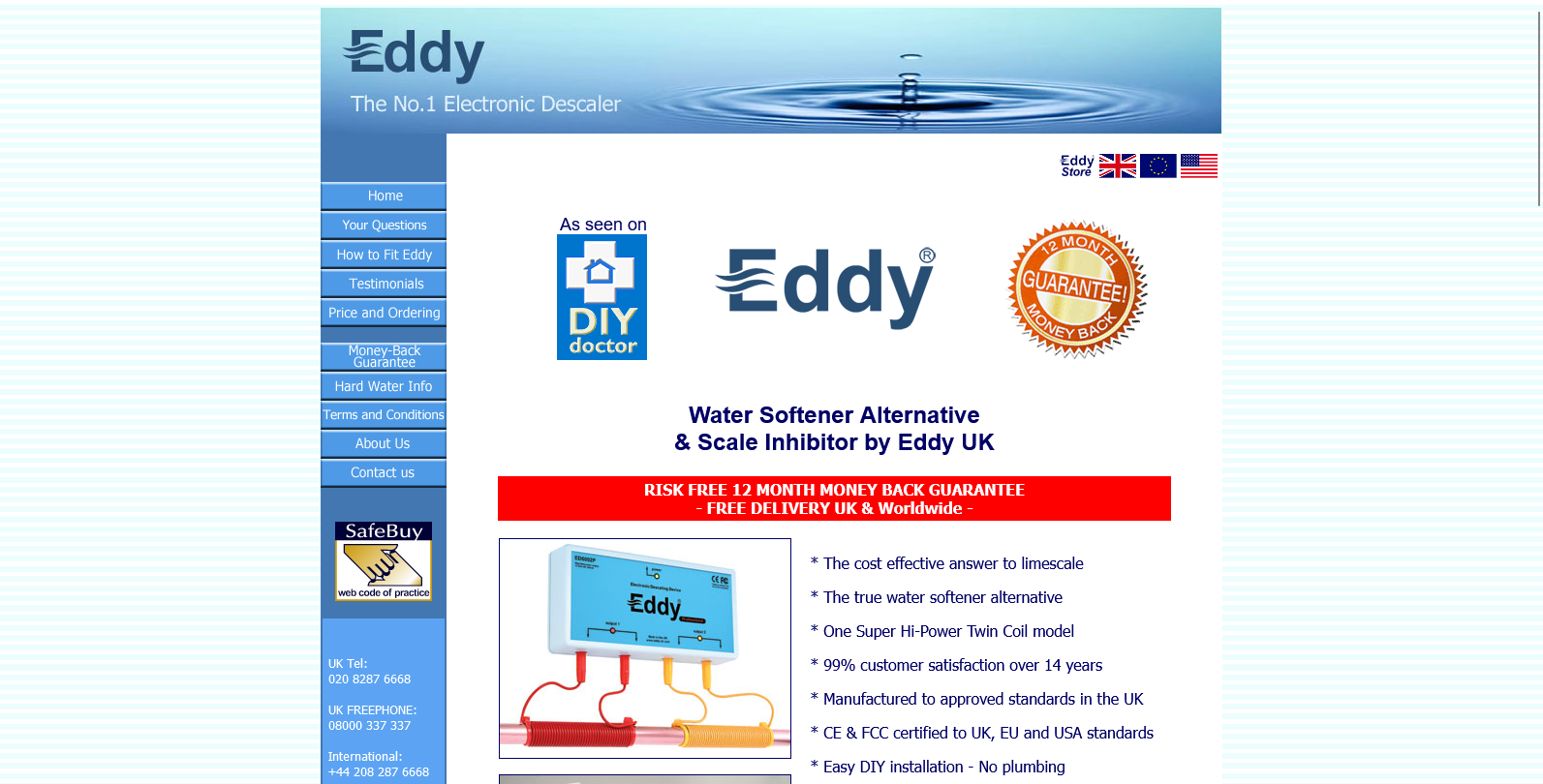 Electronic water descaler specialists, Eddy UK, manufacture a low cost, eco friendly alternative to water softening. Using the very latest in technology, the electronic descaler can remove limescale on your entire house or building, including your combi boiler, removing the build of limescale which hard water normally entails.