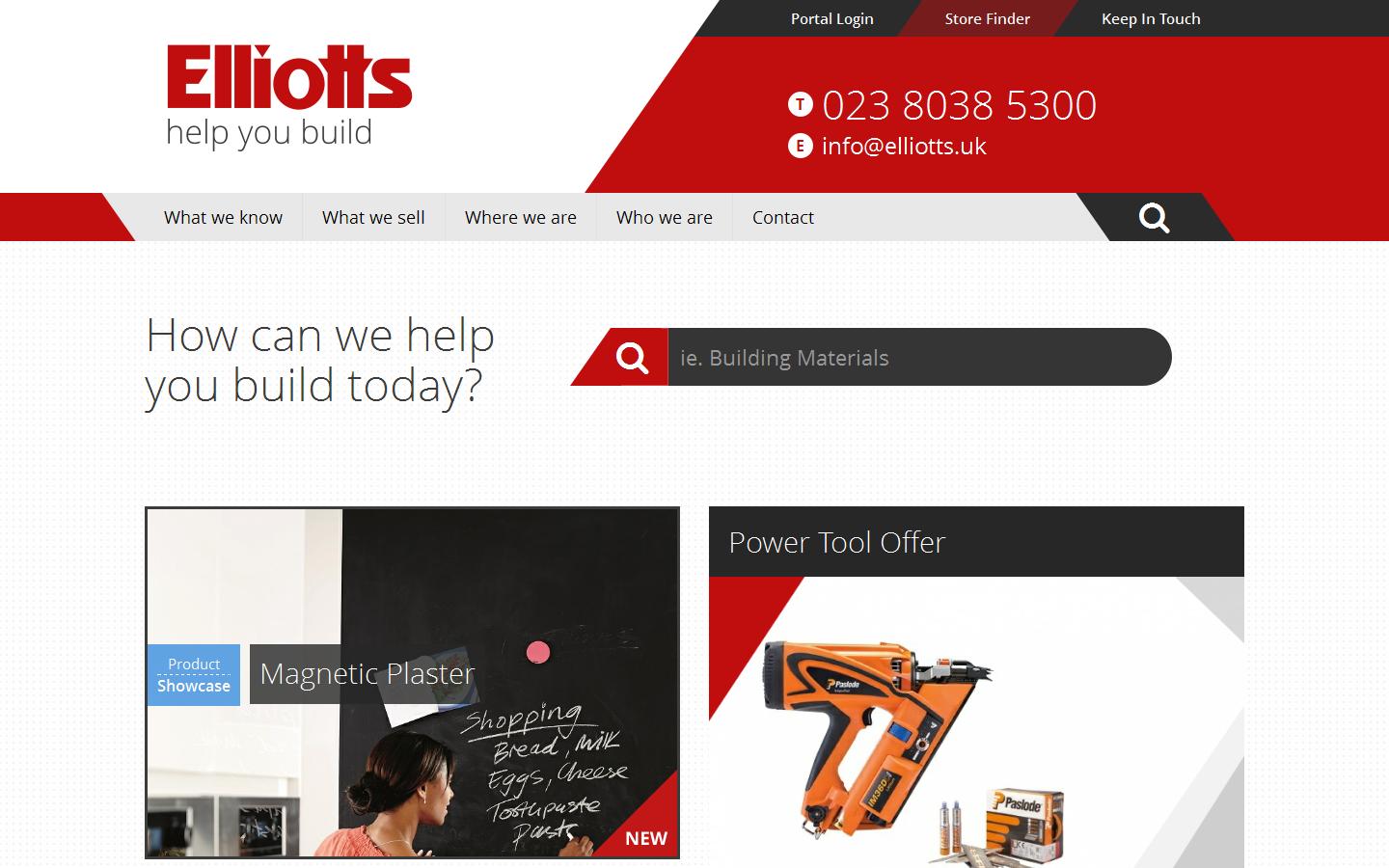 Founded in 1842, Elliotts is one of the oldest family businesses in the South. It has builders merchant branches in Bishops Waltham, Chandlers Ford, Christchurch, Fareham, Fordingbridge, Ringwood, Romsey, Southampton, Tadley and Totton meaning an Elliotts branch is never more than 20 minutes away from any building site in Hampshire. In addition, it has four kitchen and bathroom showrooms, two specialist tool centres open to the trade and public in Portsmouth and Winchester and its own roofing company, Elliotts Premier Roofing.