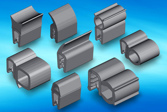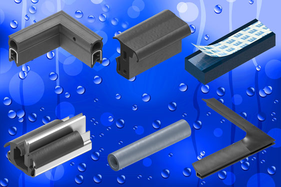 Profiles in EPDM, neoprene, PVC, black nitrate and natural rubber cover traditional expanded closed cell (self-adhesive) foam, through wiping blade and bubble or P type sections, with self-grip (clip-on), channel fixing and window type (with expansion insert), to more complex multi-functional and custom designs perhaps with fillers or flocked weather strips and supported sections with internal or flange structural support.