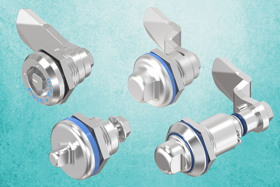 The EMKA stainless steel locks and latches program includes quarter-turns, hygiene/wash-down locks, conventional L and T handles, space-saving swinghandles and rod mechanisms, compression locks, safety locks (vibration proof with built-in cover to exclude dirt), ring handle, wing knobs, padlockable handles and heavy-duty latches.