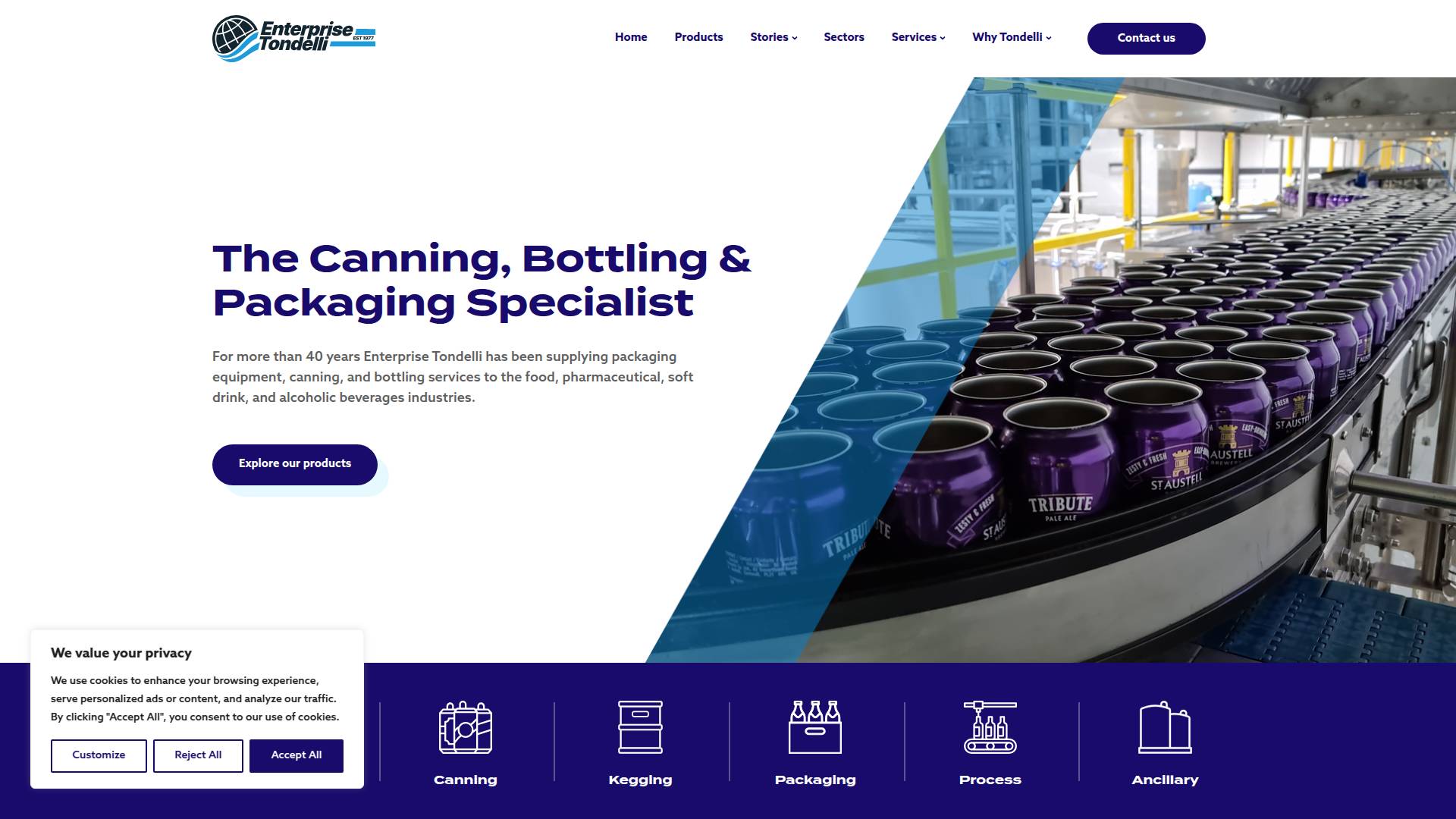 Enterprise Tondelli are specialists in bottling and canning equipment and packaging equipment - labelling, conveyors, cartonning, filling and capping machines, brewery equipment and brewing systems, bottling lines and much more.