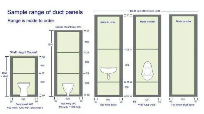 Durability and Hygiene: These panels are often made from durable, easy-to-clean materials (like laminate, stainless steel, or solid surface) that contribute to the overall hygiene of the space by preventing the build-up of grime or bacteria around visible pipes and fixtures.
