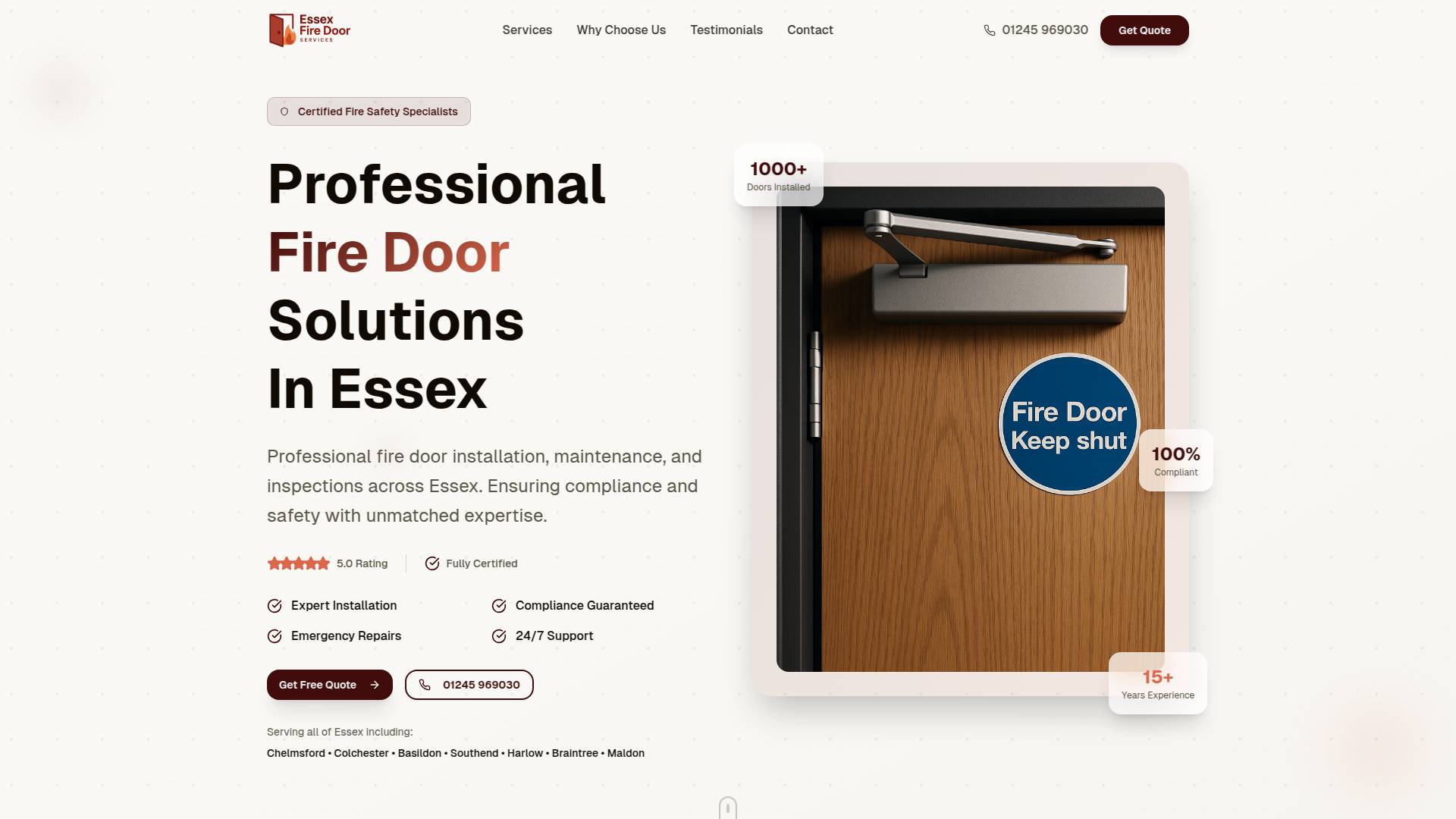 Essex Fire Door Services helps landlords, schools, hospitals and businesses stay safe and compliant without the hassle. We deliver fire door surveys, installations and remedial repairs on frames, closers, intumescent and smoke seals, glazing and ironmongery. After every visit you receive clear evidence: photos, asset tags and a straightforward report for audits. Our engineers are punctual, tidy and practical. We explain options in plain English and only recommend what is needed. From closing up gaps to replacing non compliant doors, we keep disruption low and quality high. Facing a deadline? We prioritise critical items, schedule the rest, and provide honest pricing, reliable timelines and responsive aftercare.