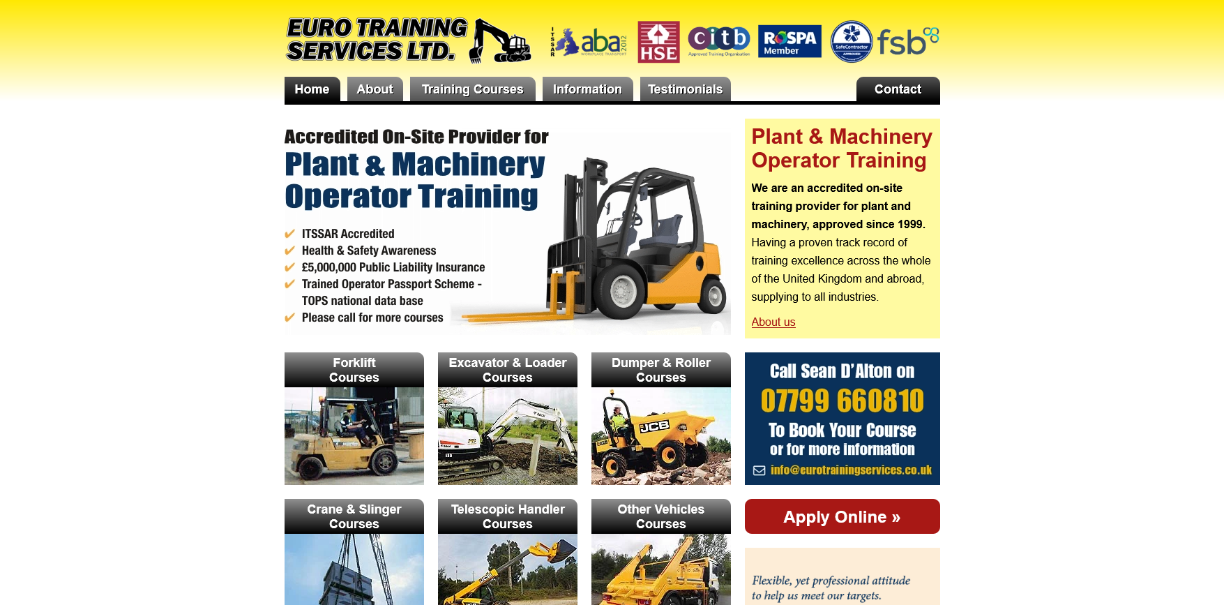 Since 1999, Euro Training Services Ltd has been an accredited on-site training provider for plant and machinery operators, with a proven record of excellence and the capability to deliver services nationwide across all industries.