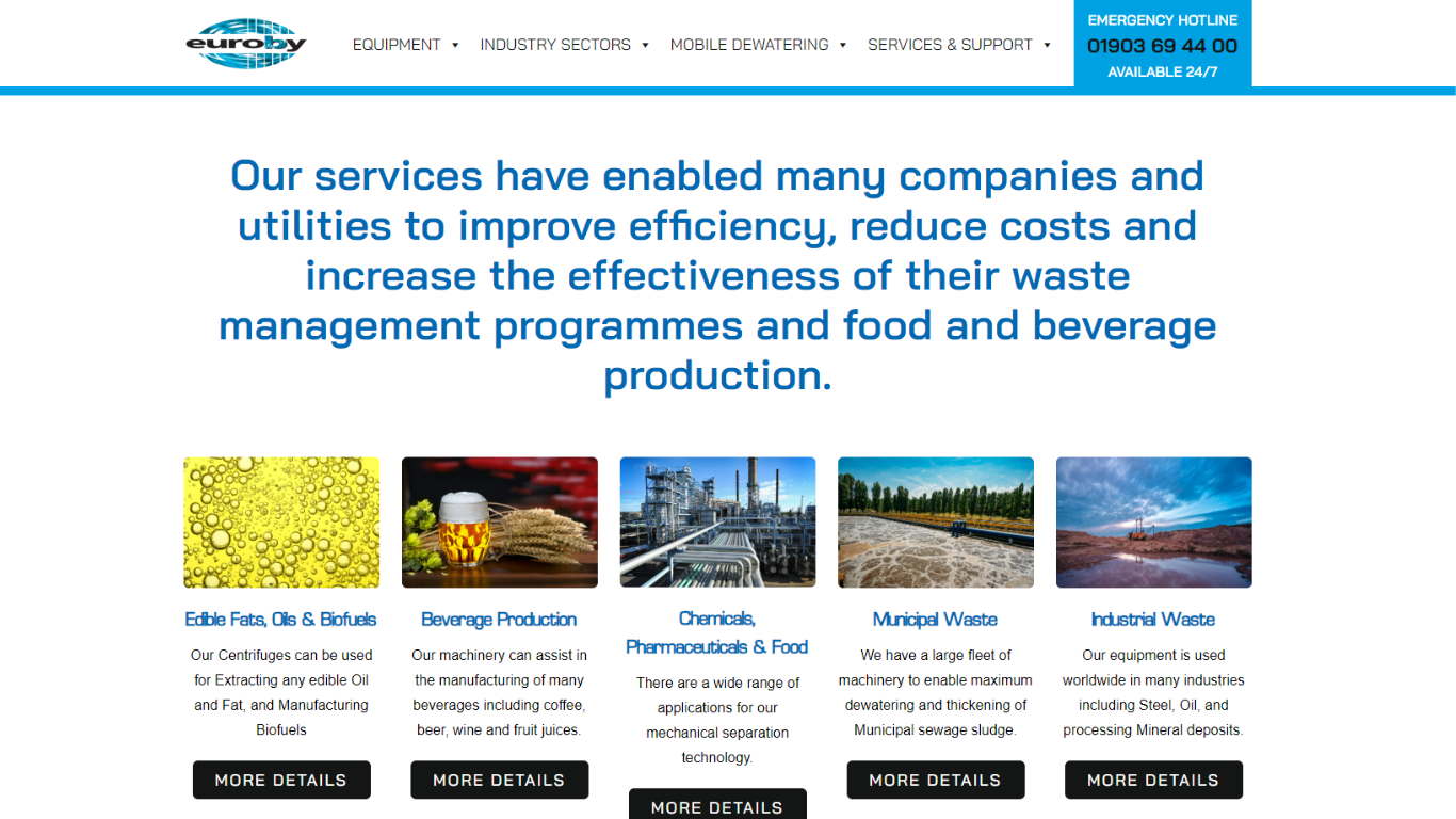 Leading the way in environmental waste equipment Euroby Ltd is your number one choice in sludge dewatering and drying equipment helping treat, thicken and dewater almost any liquid.
