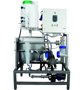 The INDAG polymer dissolving station type FlowMix® MD is a single-stage, continuously operating dissolving and dosing station for liquid polymers. The heart of the system is the INDAG mixing pump, which dynamically introduces the mixing energy required for the dissolving process during the pumping process.