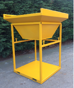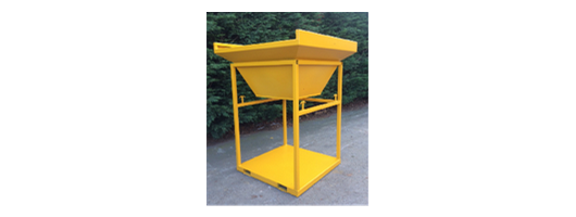 The frame is constructed in 50 x 50 x 2.5mm box section and the Hopper is constructed in 3mm sheet steel. The base accommodates a standard 40" x 48" pallet with fork pockets fitted to allow easy movement around the yard.