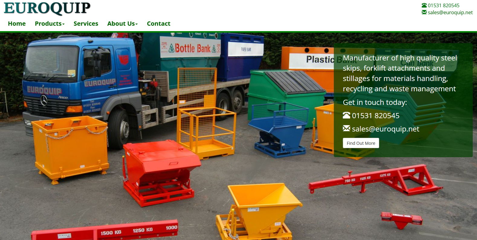 Established in 1977, Euroquip Newent Limited manufactures skips, safety access platforms, lifting jibs and stillages for a wide range of industries and waste management companies.