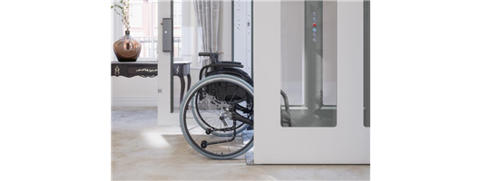 Our premium home lift is designed with a larger footprint to carry up to five standing passengers or a single wheelchair user with or without an attendant in comfort.