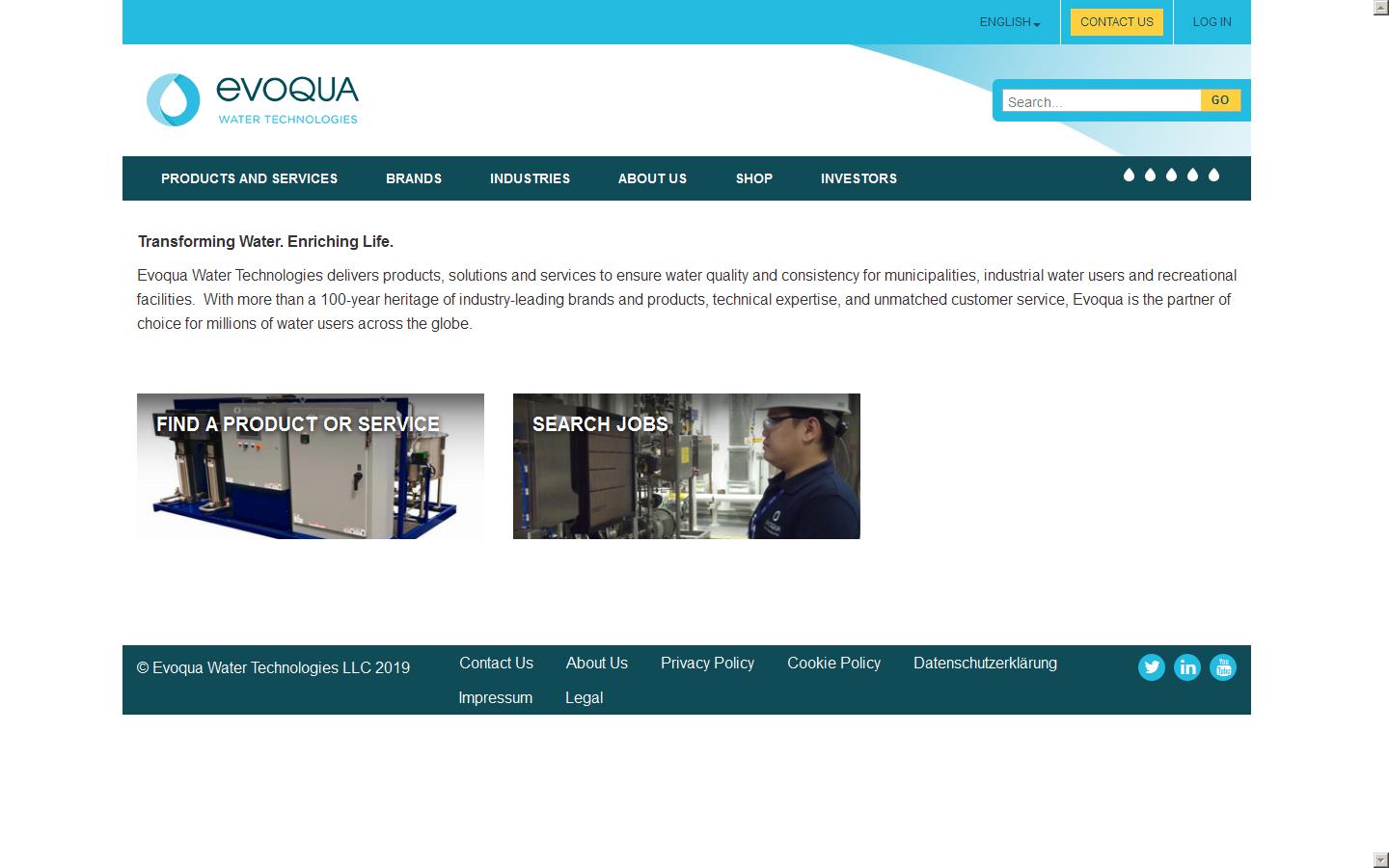 Evoqua Water Technologies delivers products, solutions and services to ensure water quality and consistency for municipalities, industrial water users and recreational facilities. With more than a 100-year heritage of industry-leading brands and products, technical expertise, and unmatched customer service, Evoqua is the partner of choice for millions of water users across the globe.