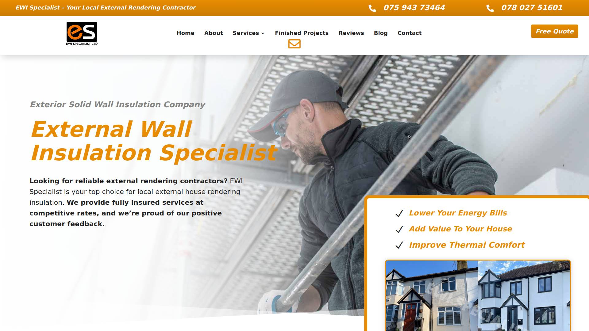 EWI Specialist Ltd is a leading external rendering and insulation contractor based in Essex, providing professional external wall insulation (EWI) and rendering services across the UK. With over 21 years of experience, we specialise in energy-efficient solutions designed to reduce heat loss, improve your home's thermal efficiency, and enhance aesthetic appeal.
