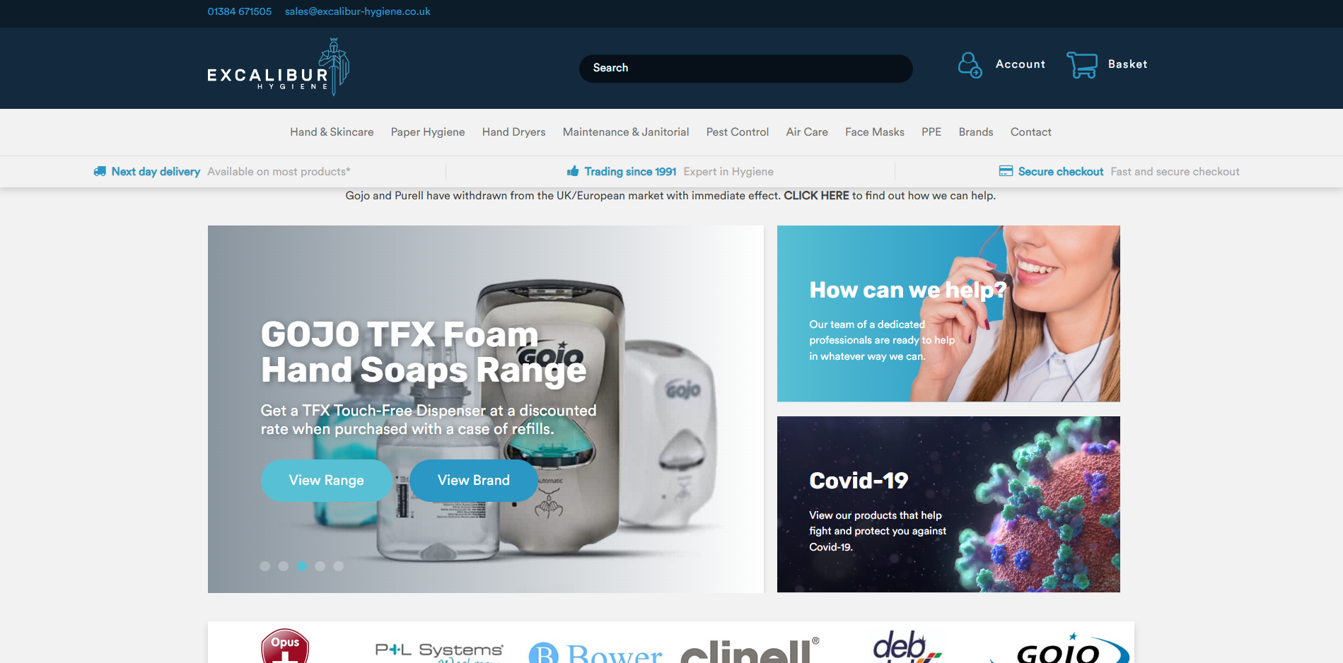 Here at Excalibur Hygiene we sell a variety of products for those who need to keep high hygiene standards, whatever the environment. Our range includes hand cleaners, alcohol spray, infection control, cleansers, soaps, wipes, cleaning products and sanitizers for industry, education, food and healthcare.