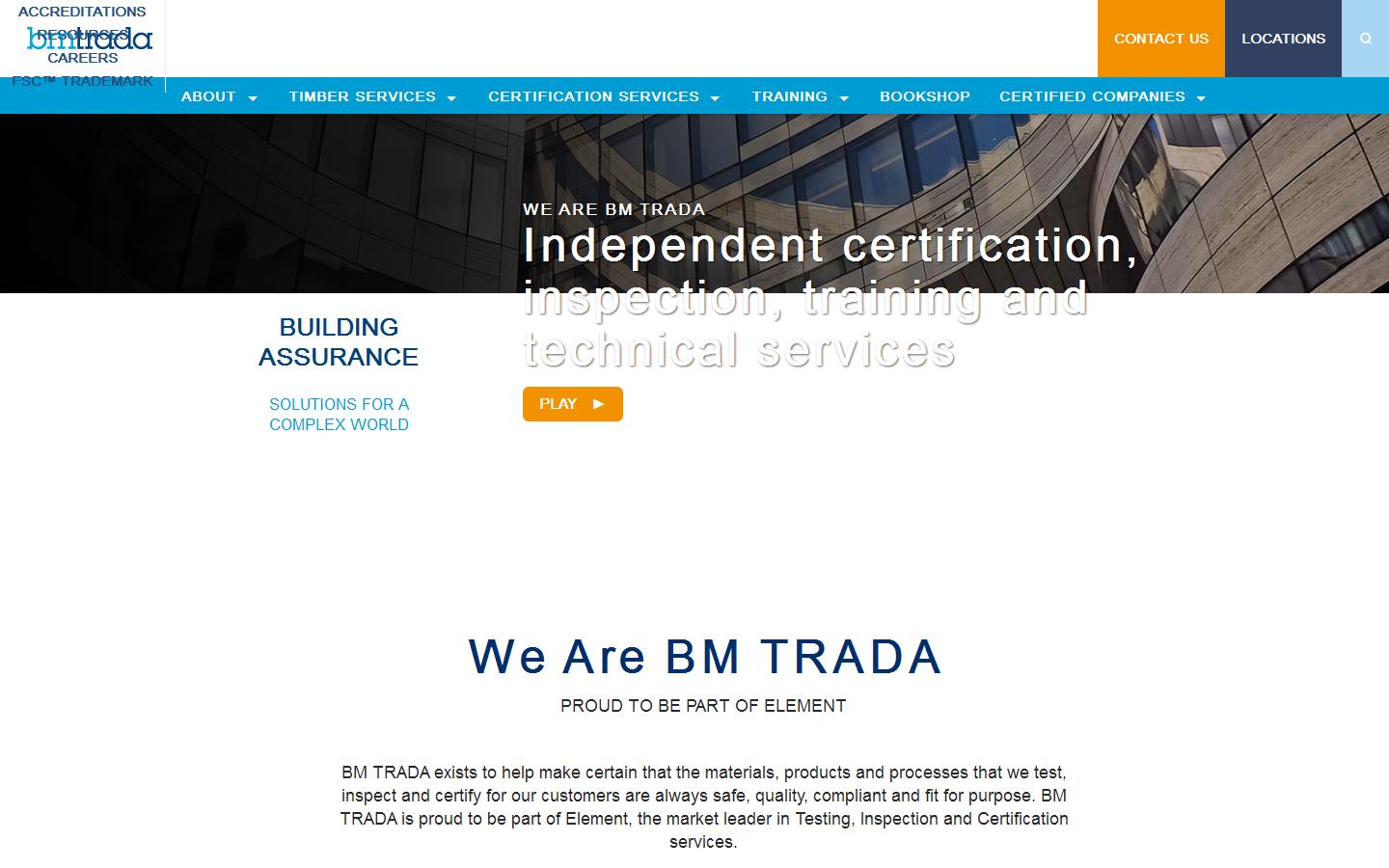 BM TRADA exists to help make certain that the materials, products and processes that we test, inspect and certify for our customers are always safe, quality, compliant and fit for purpose. BM TRADA is proud to be part of Element, the market leader in Testing, Inspection and Certification services.