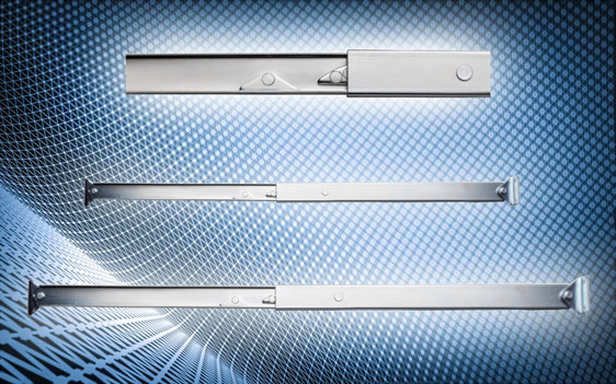These robust supports offer easy to use automatic locking and unlocking functionality integral to the guide mechanism − just lift and release for positive mechanical support while maintaining or adjusting internal equipment. Simply extend and retract 3 cm to automatically lock in place and support the cover, then extend 3 cm and release to close.