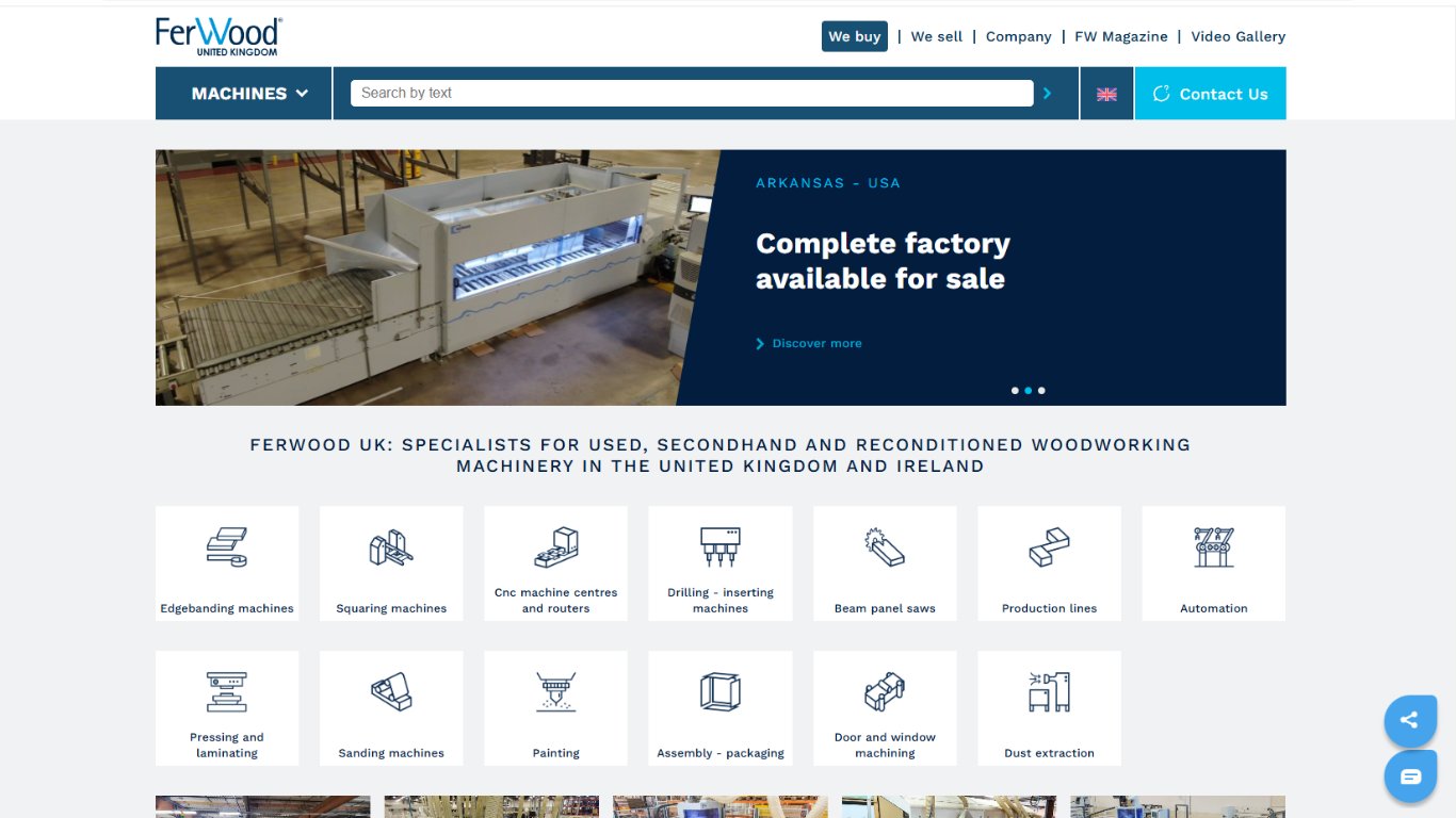 Specialists in used and refurbished panel processing machinery, Ferwood Machinery Ltd offer a wide range of machines and tools that are available to view online. Based in Leeds, our company has four main brands titled Ferwood Approved, Ferwood Functional, Ferwood As It Is and Ferwood Network. These premium brands are widely recognised for their extensive product ranges and high quality solutions that are often utilised across multiple industrial applications. We are best known for reconditioning existing machinery and restoring them to their optimal conditions.