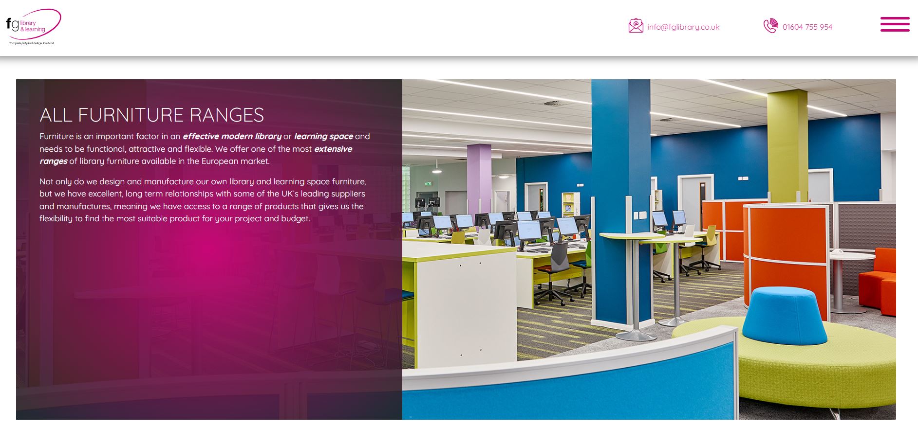 FG Library design vibrant and living libraries & learning spaces that work. We are the market leading supplier and manufacturer of library furniture.
