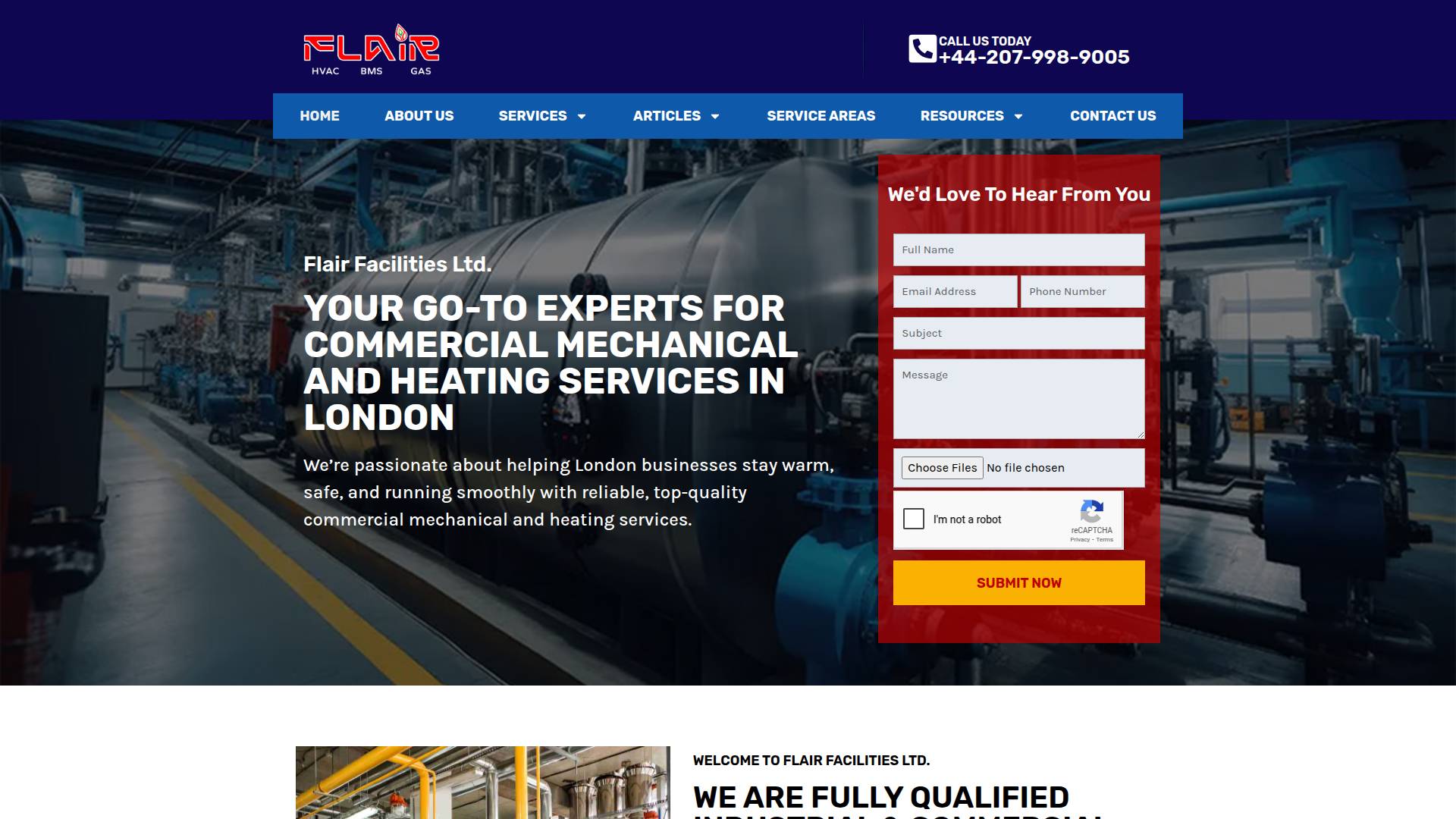 Trust Flair Facilities Ltd for reliable HVAC and heating services across London. We provide complete commercial solutions, from system design and installation to maintenance and emergency repairs. Our fully certified engineers work with all major brands, ensuring high-performance systems that meet industry standards. Whether you're managing an office, school, healthcare facility, hotel, or leisure centre, our team delivers tailored support to keep your systems running efficiently. With 24/7 emergency response and a strong reputation for quality, Flair Facilities Ltd is your trusted commercial partner.