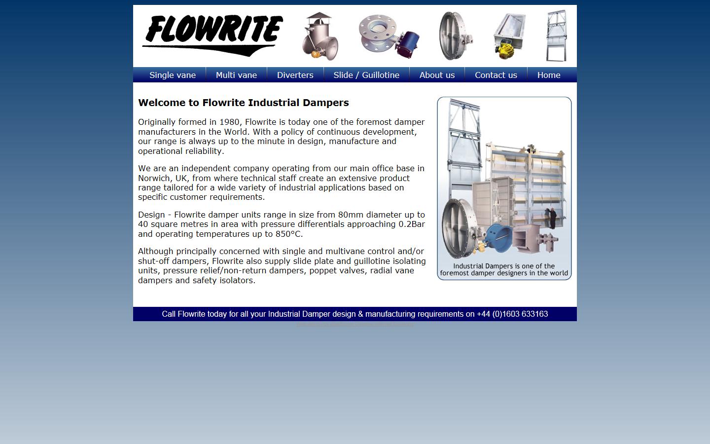 Originally formed in 1980, Flowrite is today one of the foremost damper manufacturers in the World. With a policy of continuous development, our range is always up to the minute in design, manufacture and operational reliability.