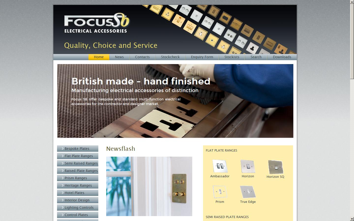 Established since 2001, Focus SB was formed by a merger between Sussex Brassware Ltd (Est. 1978) and Focus Electrical Ltd (Est. 1996), offering a range of lighting accessories and solutions to the UK industry We have gained an enviable reputation for offering top quality products and efficient customer service to the specification market.