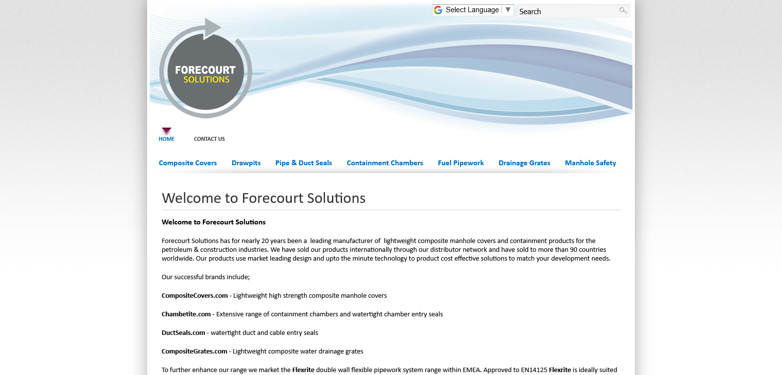Products include Flexible Pipework Systems, Ducts (Twin Wall Corrugated), Pipework Connectors & Fittings, Installation Components & Tools, Flexible Stainless Steel Hoses, Pipe Seals, Dispenser Sumps, Tank Sumps, Vent Stack Chambers, Manifold Chambers, Landfill Monitoring Equipment Chambers, Seismic Monitoring Chambers, Transformer Bund Sumps, Sumps & Non Watertight Chambers, Water Resistant Drawpit Chambers, Water Drawpit Chambers Excluding Manhole Cover, Drainage Sumps & Pump Chambers, Cable Seals, Fuel Station Covers, Construction & Utility Manhold Covers, Modular Covers, Lift Sticks, Manhole Security & Drainage Gates.