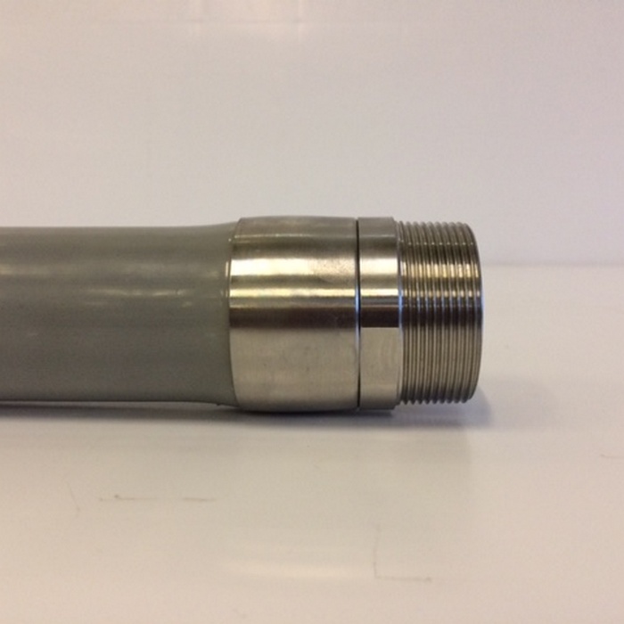 This stainless steel coupling is internally swaged to secure it to the pipework. Finished thread connect 1 1/2" Bspt