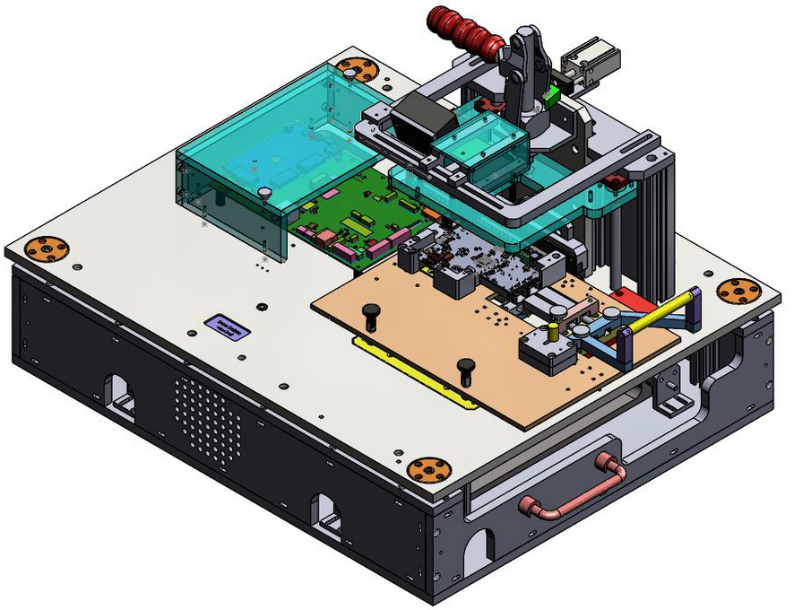 Small, Manually Actuated, Functional Test Jig designed to be installed into a customer supplied RF Shielded Box / Chamber.