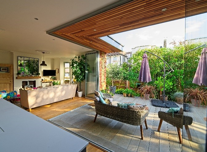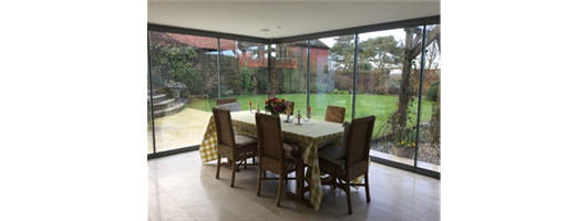 Creating a statement in your extension. The frameless open corner product allows the corner post to be easily removed opening up a whole space. Perfect for the Summer.