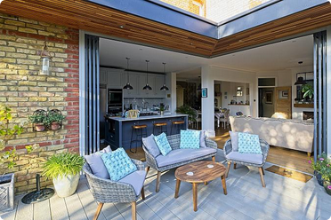 Bifolding door with no visible vertical mullions for the best clear views and light.