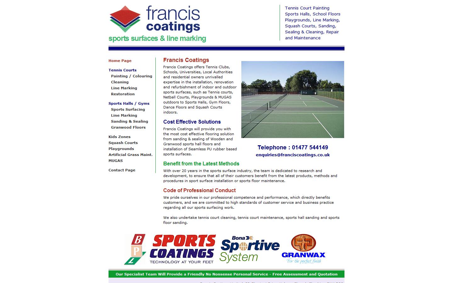 Tennis Courts Painting / Colouring Cleaning Line Marking Restoration Sports Halls / Gyms Sports Surfacing Line Marking Sanding & Sealing Wooden / Granwood Kids Zones Squash Courts Playgrounds Artificial Grass Maint. MUGAS