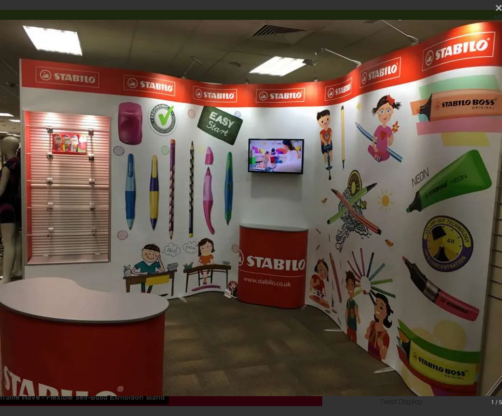 Modular, flexible and portable, the Twist stand is a single product, however, you can add on to this indefinitely to create a huge, seamless display of any length and virtually any shape you would like. A huge advantage over other display stands such as roller banners, pop ups and panel systems.